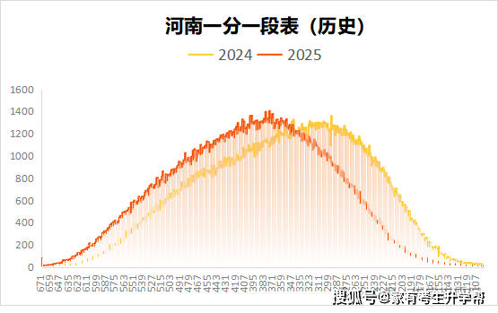 以下就2024-2025年河南省通俗类高考省控线及一分一段表变化阐发近两年高考分数分布的变化环境。因河南2024年仍是老高考,故2024年本科批省控线年本二批省控线。