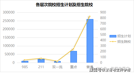 下表为河南省各条理院校招生打算(本科),招生院校共计1239所(含分校)。此中,51所985大学(含分校)正在河南有招生,招生打算为10600个,占总本科打算的2。86%,比沉最小。有79所211大学(含分校,不含985高校)正在河南招生,招生打算21355个,占总本科打算的5。76%。双一流大学(含分校,不含985/211)有28所,招生打算有8363个,占总本科打算的2。26%。沉点大学有250所(含分校,不含前述高校),招生打算69853个,占总本科打算的18。85%。通俗院校有831所,招生打算260380个,占总本科打算的70。3%,比沉最大。