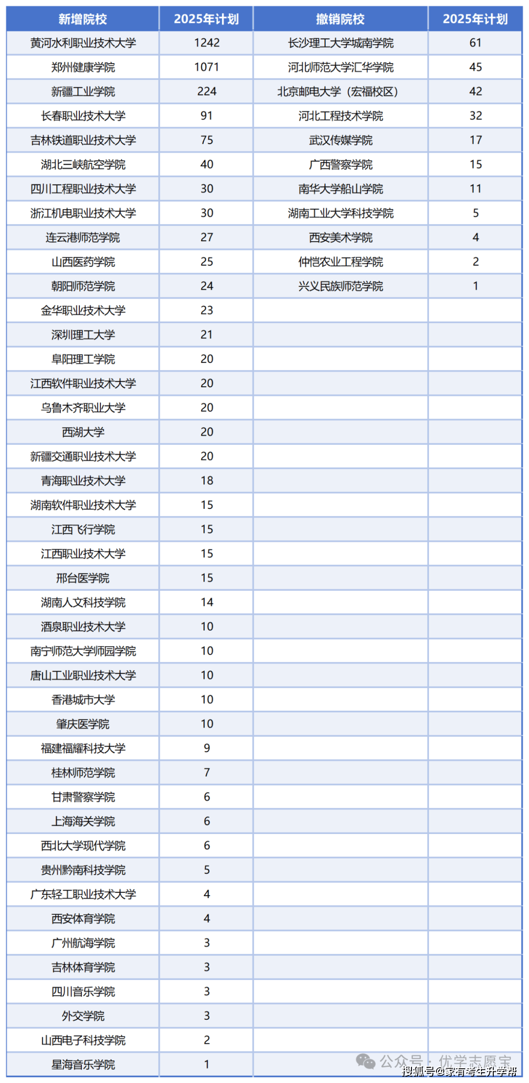 据数据统计阐发,2025年河南新增43所招生高校,按照新增打算从高往低进行排序,汇总如下。此中,新增院校中招生最多的是黄河水利职业手艺大学,该校由黄河水利职业手艺学院升格而来,2025年招生打算为1242人;其次是郑州健康学院,是由郑州澍青医学高档专科学校升格而来,2025年新增招生打算为1071人,这两所职业本科院校。第三名是新疆工业学院,新增招生打算为224人。新增院校2025年招生合计划为3227人,这43所院校多为外省的院校,但第一、二名两所省内院校招生人数共计2313人,占了新增总数的71。7%。