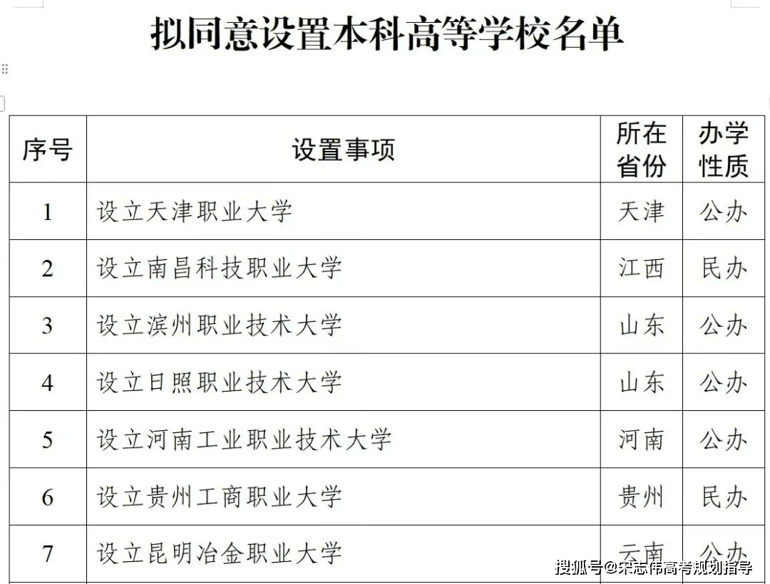 对于家长和考生来说,“新大学”的呈现,意味着报考的“新机缘”来了。 而正在近年择校时,越来越多中高分段的考生起头关心“职业本科大学”, 2026年1月4日,教育部发布公示:同意设置15所“新大学”,此中有7所是职业本科院校,一路来看看这7所“新大学”吧!