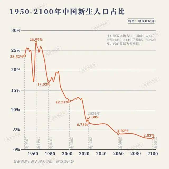 ,这意味着,中国重生生齿占世界的比例,跌破7%了!而按照2024年中国出生生齿数据和生齿司估量的全球出生生齿数量,这个比例还接近7。4%。